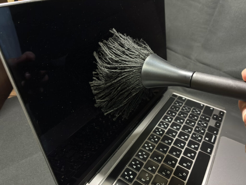 モニター画面は、柔らかい毛の方で軽く撫でるように掃いてみました。