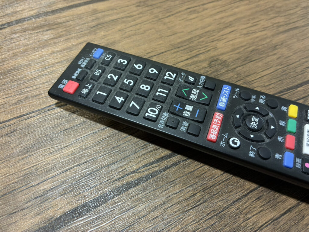 モニター用のリモコンについては、ほこりが多く付着していました。そのため、硬い方の毛を用いて入念にボタンの間やボタンの溝を掃除します。