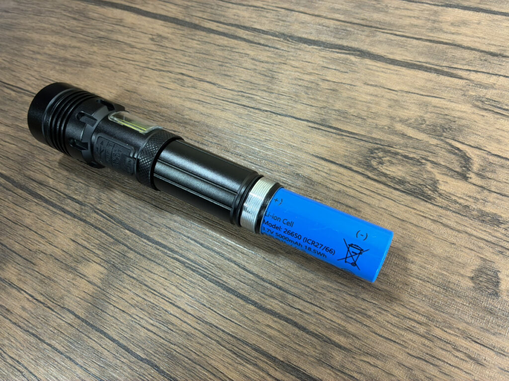最大出力が非常に明るい分、ハイパワーで連続使用すると本体がほんのり温かくなることがあります。