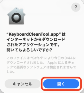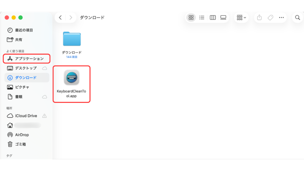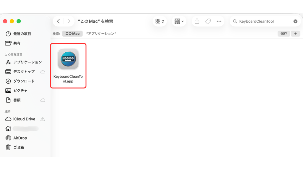 まずはアプリケーションフォルダに移動し、「KeyboardCleanTool」アプリを起動します。