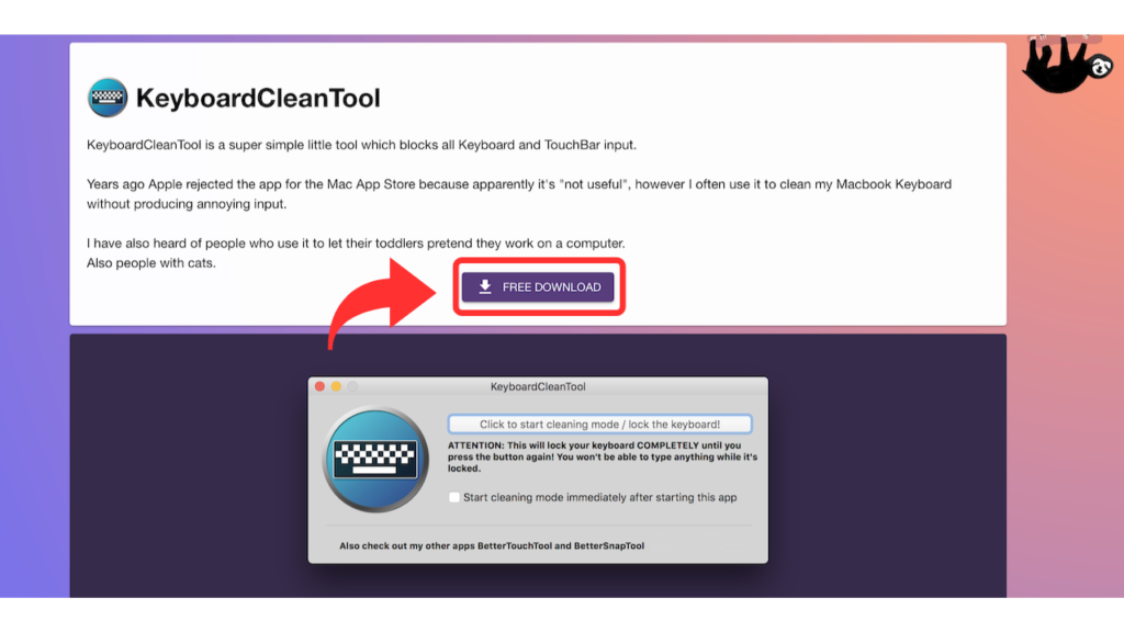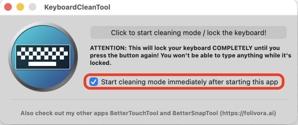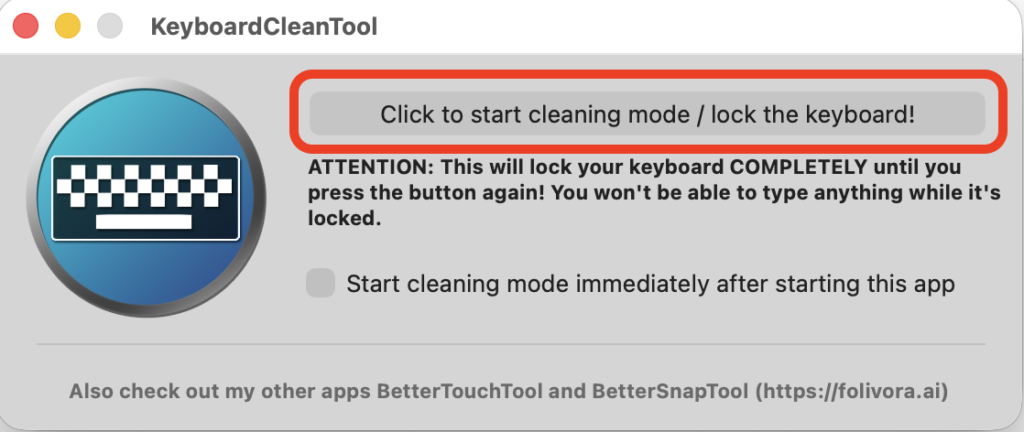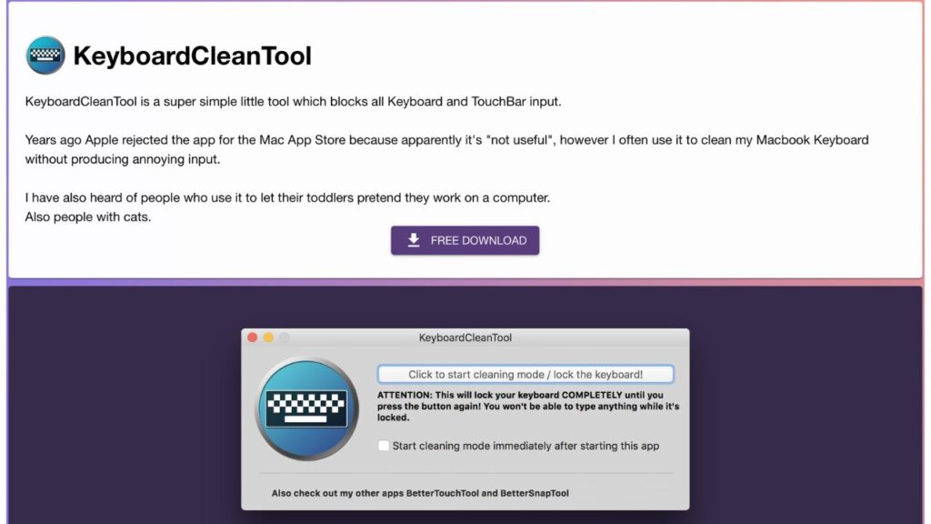 KeyboardCleanToolは、キーボード掃除中の入力を一時的に無効化できるMac用ツールです。