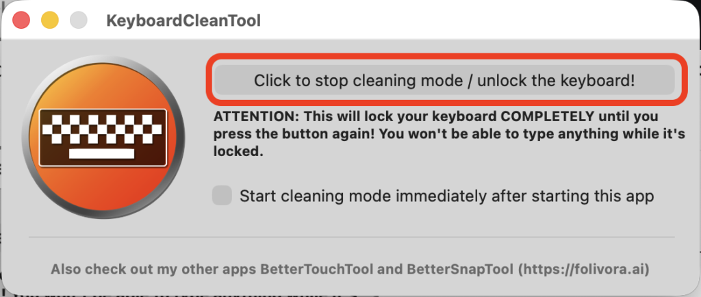 KeyboardCleanToolは、キーボード掃除のために キーボード入力を一時的にブロックできるMac向けツールです。