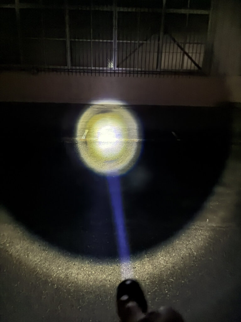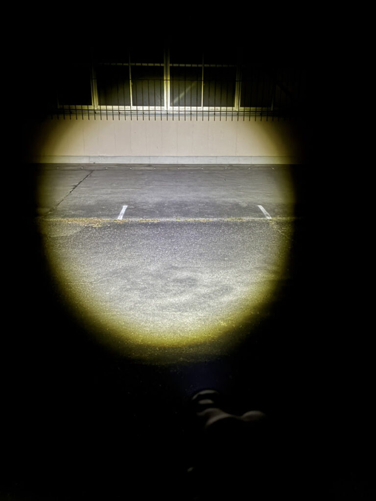 広く照らすモードでは、足元〜数メートル先までしっかり見えます。