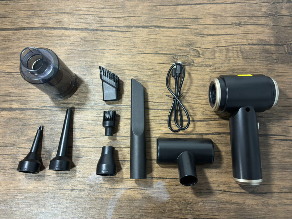 吸引だけでなく送風や空気の出し入れにも対応し、デスク周りから車内、屋外まで幅広いシーンを想定した設計です。