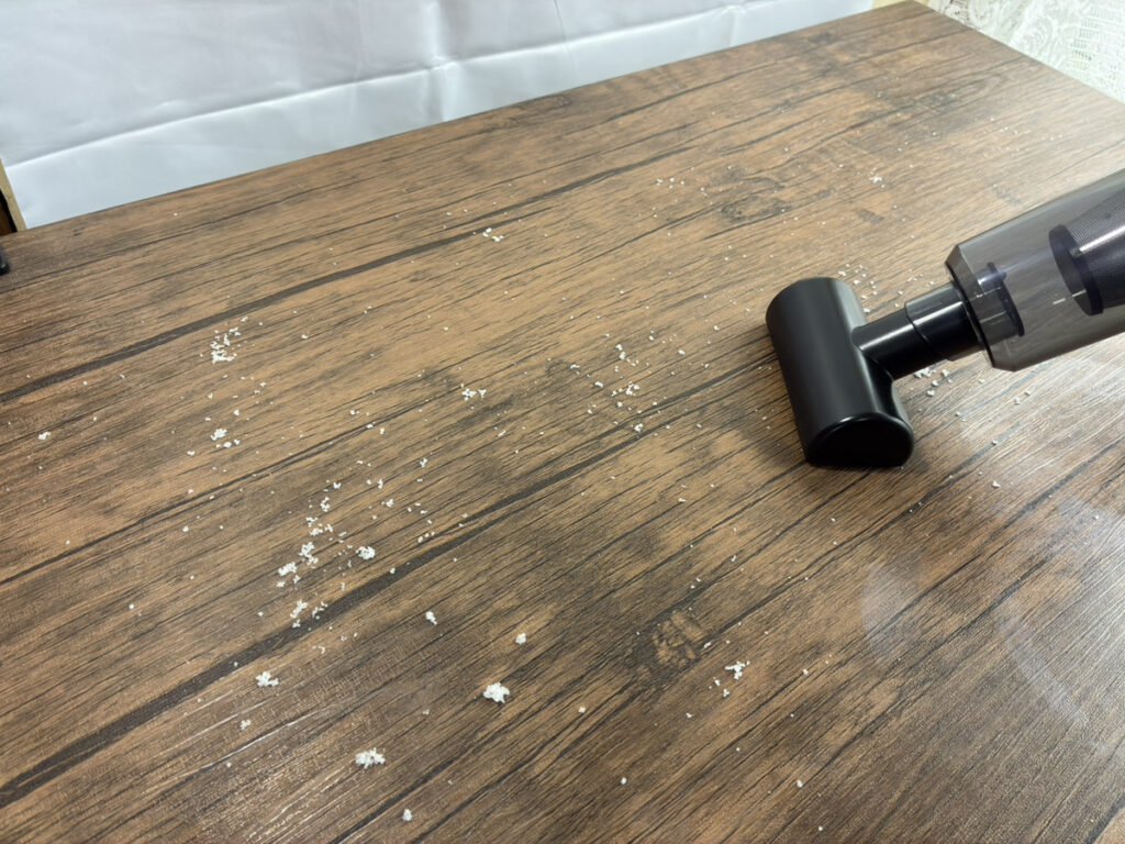 机の上に散らばった塩も、ハンディクリーナーで手早く掃除することができました。