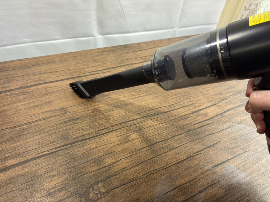 コードレスという点も相まって、デスク周りや配線の多い場所でも使いやすく、掃除機を出すほどではない場面で使える実用的なアイテムだと感じました。